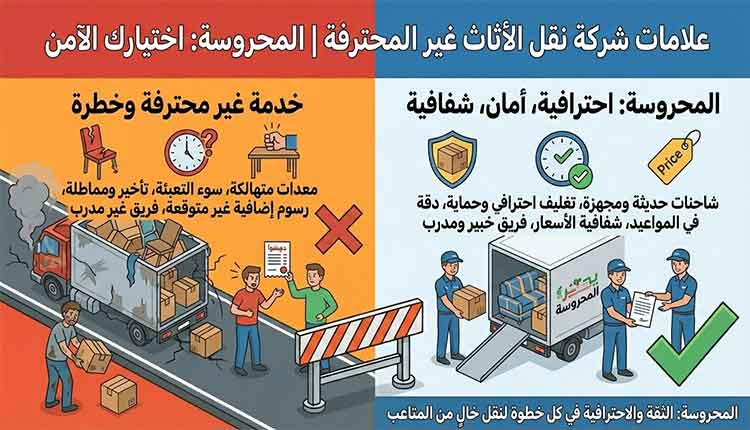 اختيار شركة نقل الأثاث خطوة مهمة تؤثر على نجاح عملية الانتقال، ومعرفة علامات الشركة غير المحترفة تساعد العميل في تجنب الكثير من المشكلات والخسائر المحتملة.